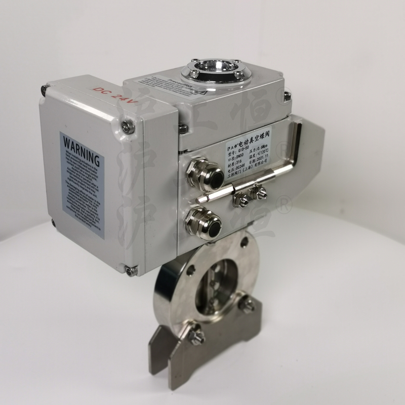 GID-50~400電動真空蝶閥:別名真空蝶閥,閥板采用夾緊結構,把閥板的密封圈夾緊,除了能用在真空狀態下,也能在低壓狀態下使用。精小型電動執行器,普通戶外開關型系列,對夾法蘭連接,中心垂直板結構,不銹鋼材質閥板,2Cr13不銹鋼閥軸,四氟閥座軟密封,閥體CF8,使用溫度-150℃+150℃,使用介質:空氣、非腐蝕性介質等,壓力0.1MPa或者負壓。