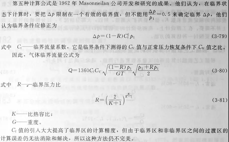 對流量系數公式的分析與比較關鍵在于對可壓縮流體公式的比較。從表3-5中看出不同計算公式的考慮因素各不相同,但畢竟都以原來的液體計算公式為基礎?梢园堰@些公式分成早期公式和近期公式兩大類型。在所列的8種公式中,前4種屬于早期,而后4種屬于近期。在早期的計算公式中,流量系數用CV或C表示,并用重度(ϒ )代替密度(ρ)計算。因此,使用和理解這些公式都要注意它的單位。