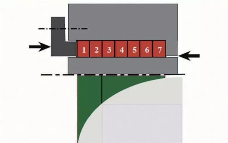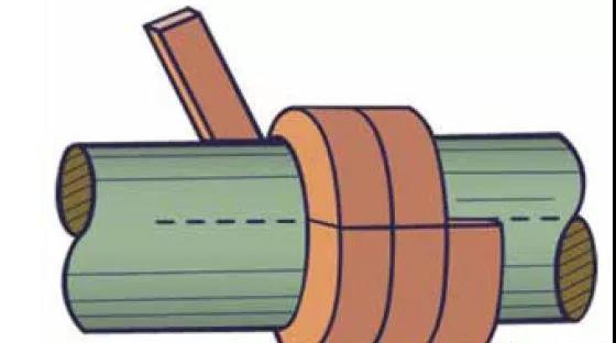 絕不能用繞線圈的方式將盤根材料裝滿填料函,而是用專用切割工具切割盤根編織材料,并制成獨立的盤根環,切口呈45º(斜接)(見圖6),這樣可以利用載荷獲得更好的端面結合。