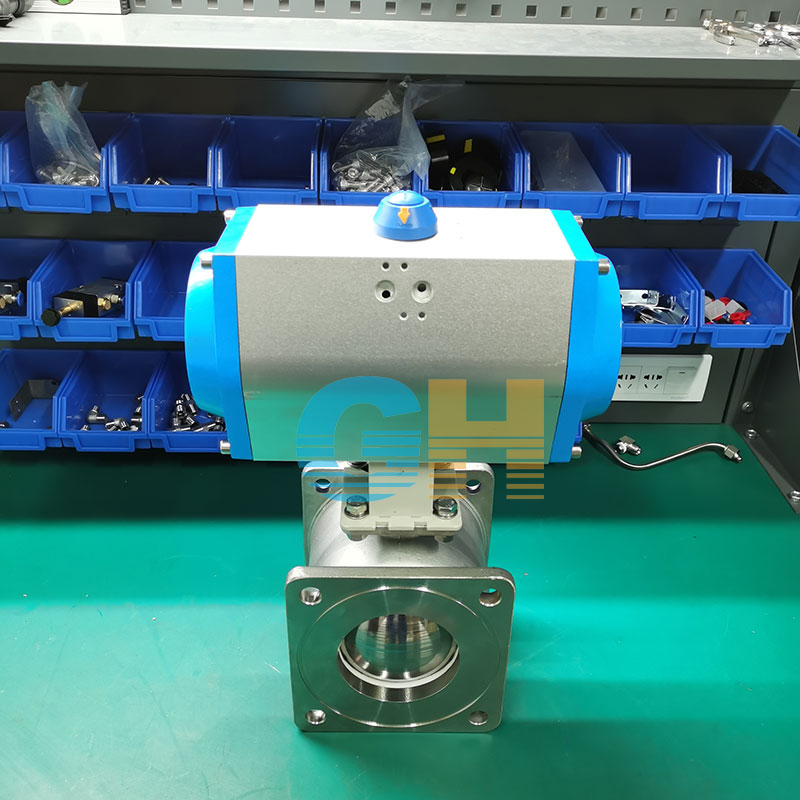 2、本氣動方球閥可安裝在任意角度的管道上,應關閉安裝為宜;焊接管道法蘭時應將閥門密封口用板擋住以防止顆粒、雜物挫傷密封面,焊后取下閥門,對閥門密封面及管道內腔進行清潔,然后再安裝固定閥門。