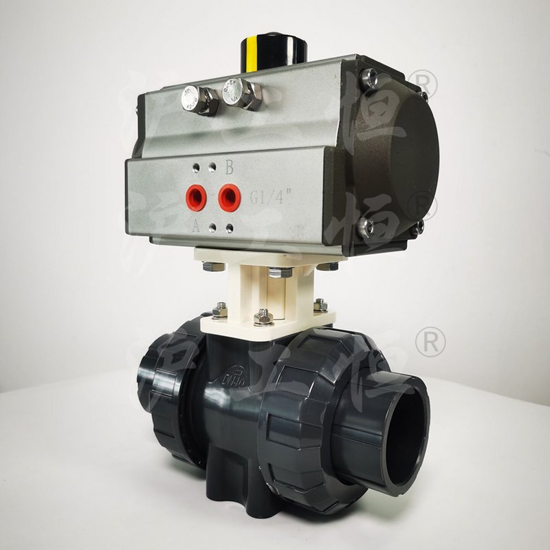 CUPVC塑料氣動球閥 Q611F25cm雙由令連接 耐酸堿閥門