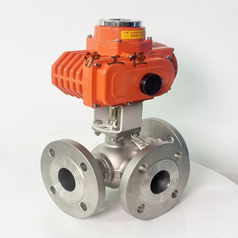 球體旋轉控制流向:電動三通球閥的核心部件是球體,球體上有三個通道,分別對應閥門的三個進出口。球體繞閥體中心線作旋轉運動,當球體旋轉到不同位置時,可實現介質的分流、合流或流向切換等功能,從而控制管道中介質的流動方向。