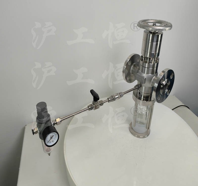 GHCSZXQYF-16帶有氮氣吹掃口在線取樣閥用于管線在線取樣,取樣介質真實, GHCSZXQYF-16帶有氮氣吹掃口在線取樣閥主要用于取粘稠介質,因粘稠介質的流動性差,特在取樣閥的出料口增設氮氣吹掃口,可將粘稠介質吹掃至取樣瓶內,提高再次取樣的準確性,GHCSZXQYF-16帶有氮氣吹掃口在線取樣閥主要有閥體、閥芯、閥桿、閥座、排氣口,氮氣吹掃口、止回閥、吹掃球閥、取樣瓶組成,取樣瓶為可拆卸設計,試樣進入取樣瓶內,配套的瓶蓋可將取樣瓶密封,避免污染試樣,取樣閥流道無滯留、無流阻設計,不影響流量,閥桿通過手輪旋轉帶動閥桿及閥芯,閥芯上下提拉,可精確控制流量,精確控制取樣量,使試樣進入取樣瓶內,取樣瓶可選透明和避光兩種,本取樣閥廣泛應用在制藥、化工、食品行業。