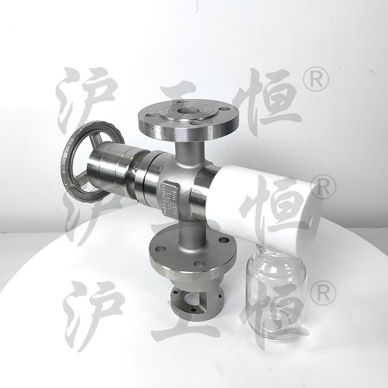 GHSZZXQYF-16R不銹鋼豎直裝在線取樣閥主要用來安裝在豎直的管道上,GHSZZXQYF-16R不銹鋼豎直裝在線取樣閥解決了現有取樣閥的復雜結構,GHSZZXQYF-16R不銹鋼豎直裝在線取樣閥主要有閥體、閥芯、閥桿、閥座、豎直取樣接頭、取樣瓶組成,取樣瓶為可拆卸設計,試樣從入料針進入取樣瓶內,并通過排氣針排出壓力,使取樣瓶保持在常壓狀態,取樣瓶品裝有橡膠膜可將取樣瓶密封,避免污染試樣,流道無流阻設計,不影響流量,閥桿通過手柄、電動執行機構、氣動執行機構旋轉帶動閥桿及閥芯,閥芯上下提拉,可精確控制流量,實現試樣進入取樣瓶內,取樣瓶可選透明和避光兩種,本取樣閥廣泛應用在制藥、化工、食品行業。