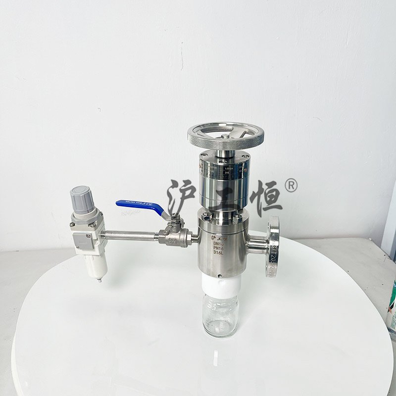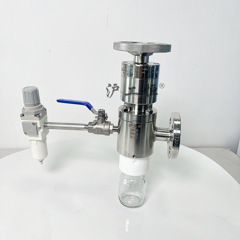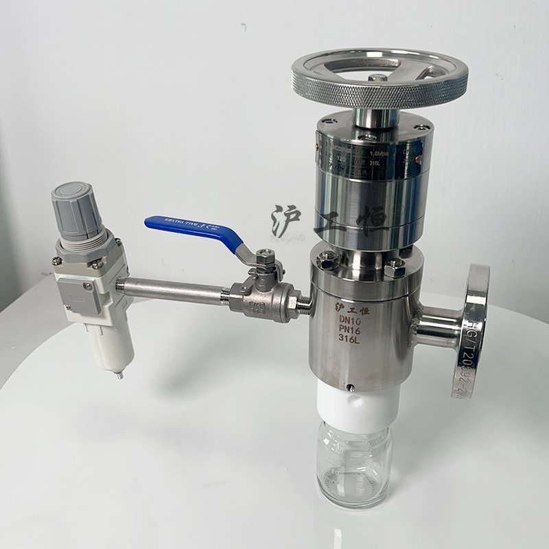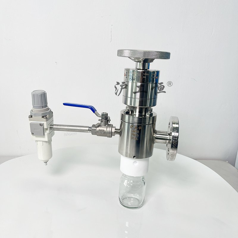 罐底取樣閥-帶反吹掃-配PFA取樣瓶,解決了現有取樣閥的復雜結構,取樣瓶采用PFA材質,可取樣為腐蝕性介質,罐底取樣閥-帶反吹掃配PFA取樣瓶主要有閥體、閥芯、閥桿、閥座、密閉針、帶膜片取樣瓶組成,取樣瓶為可拆卸設計,試樣從入料針進入取樣瓶內,并通過排氣針排出壓力,使取樣瓶保持在常壓狀態,取樣瓶品裝有橡膠膜可將取樣瓶密封,避免污染試樣,流道無流阻設計,不影響流量,閥桿通過手柄、電動執行機構、氣動執行機構旋轉帶動閥桿及閥芯,閥芯上下提拉,可精確控制流量,實現試樣進入取樣瓶內,取樣瓶可選透明和避光兩種,本取樣閥廣泛應用在制藥、化工、食品行業。