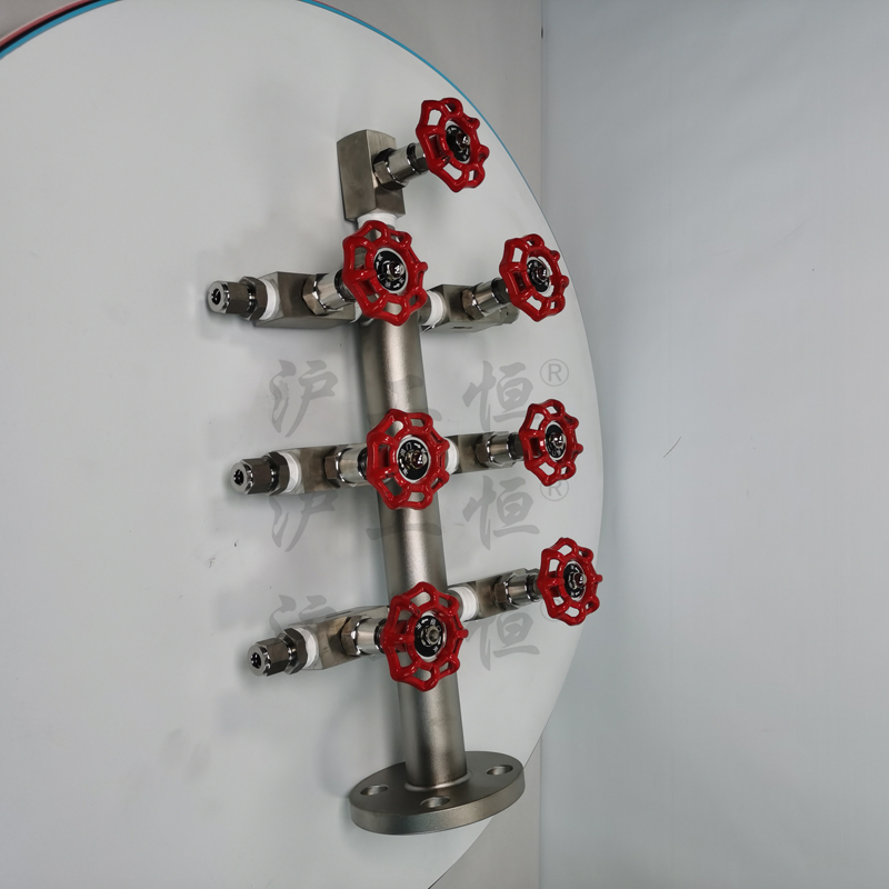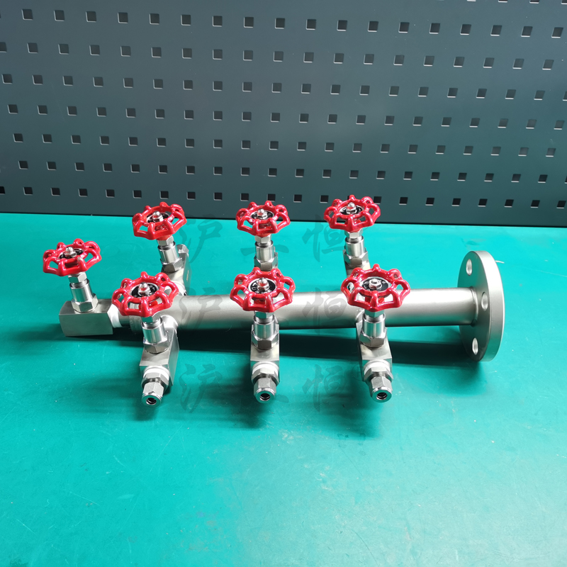 ②氣源分配器,一般采用直徑32的不銹鋼管,結(jié)合不銹鋼閥門(球閥或截止閥)及儀表管件(①擴口壓接式接頭②卡套接頭③快接等三種可供選擇)組成分配系統(tǒng)。