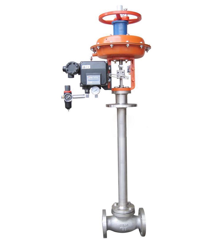 氣動薄膜直通低溫單座調節閥和氣動薄膜直通低溫雙座調節閥是氣動執器的品種之一。在石油、化工、冶金等工業生產過程的自動控制中廣泛的應用。它特別適用于-60~-250℃低溫狀態下的介質(如液氧、液氮等)的調節。為確保調節精度,配用閥門。